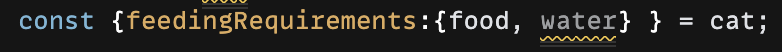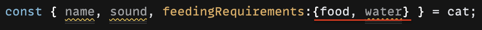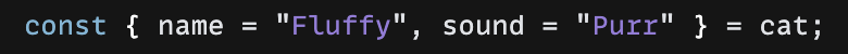 일단 cat 오브젝트를 다시 destructuring 하고,