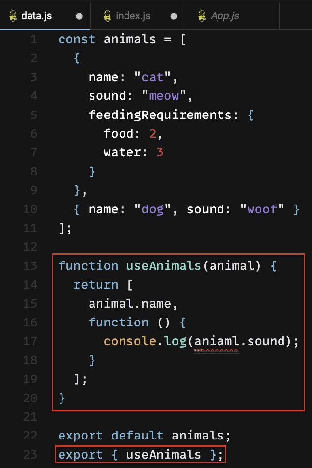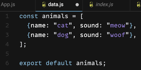App.js에서 animals array를 불러오고 나서 콘솔에 뭐가 있나 본다.