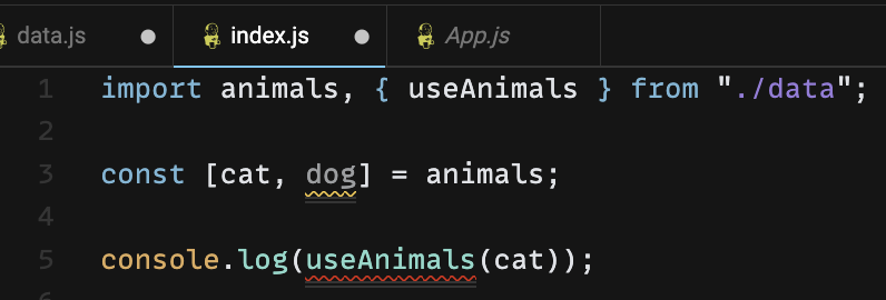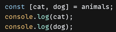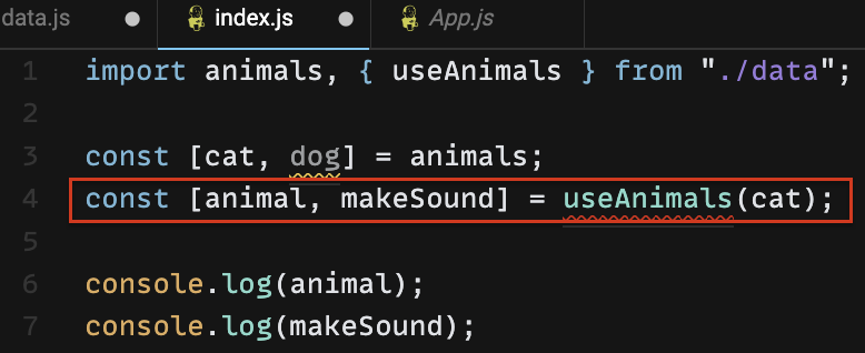 앞에서 사용해본 useState() 같은 함수도 이와 같은 방법으로 destructuring 된다.