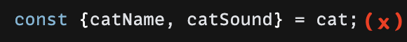 cat 오브젝트는 먼저 destructruing 되어 있어야함.