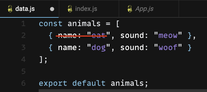 data.js에 가서 기본 설정되어 있는 cat의 name을 삭제한 후