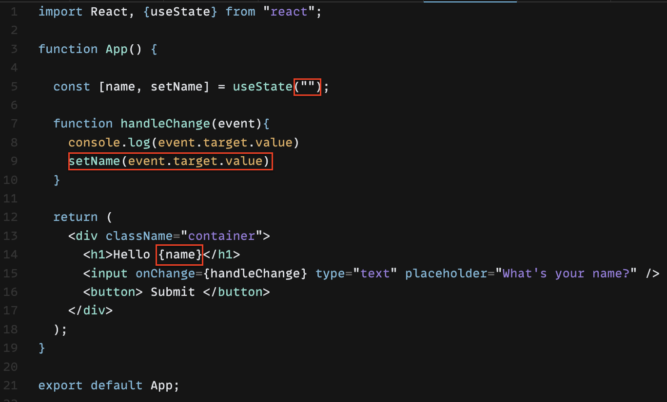 useState로 setName() 함수에 입력된 내용을 가지고 있는다.