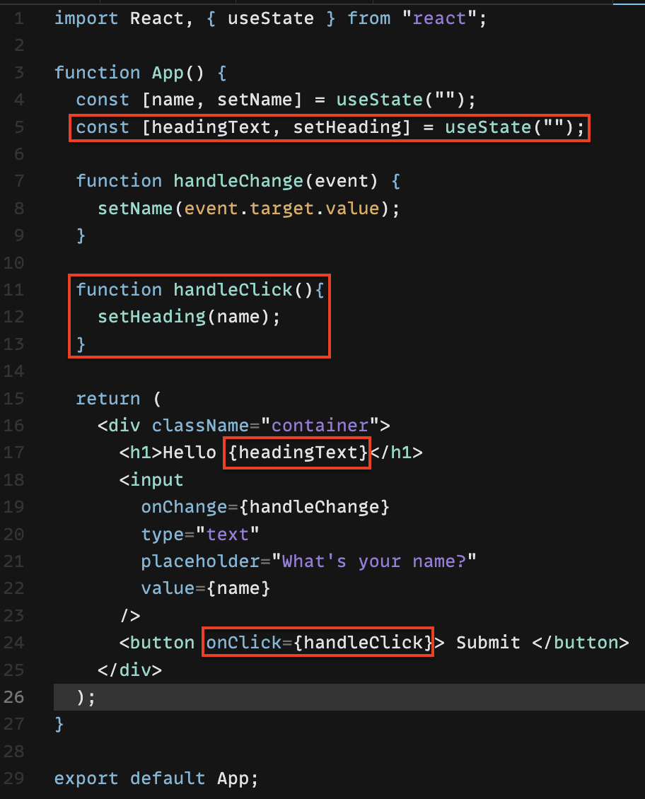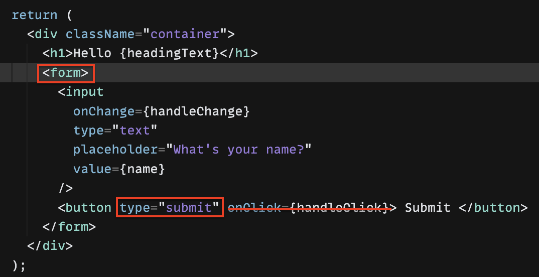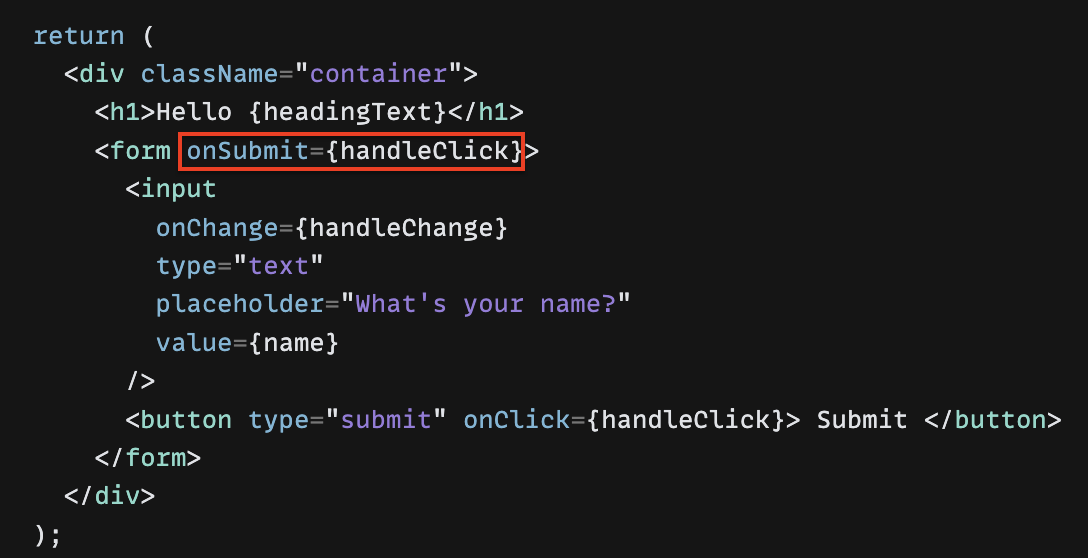 form에 폼이 submit 됐을 때 트리거되는 onSubmit을 적어주고 handleClick 함수가 호출 되도록 한다.