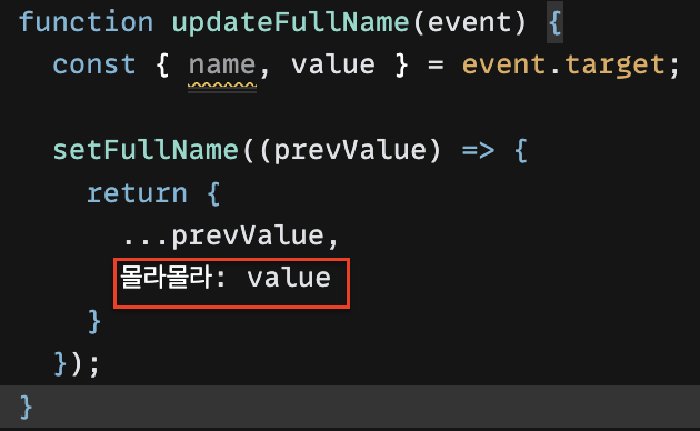 이전 벨류(prevValue)들을 스프레드 오퍼레이터가 들어간 오브젝트로 리턴한다.