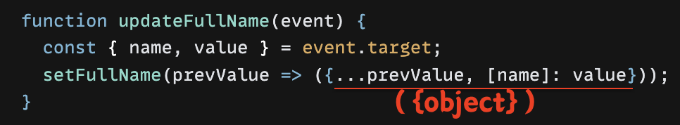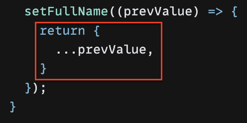 preValue => {{ object }} 중괄호 두 개가 올 것같지만 오브젝트인 경우