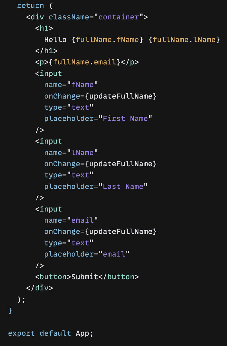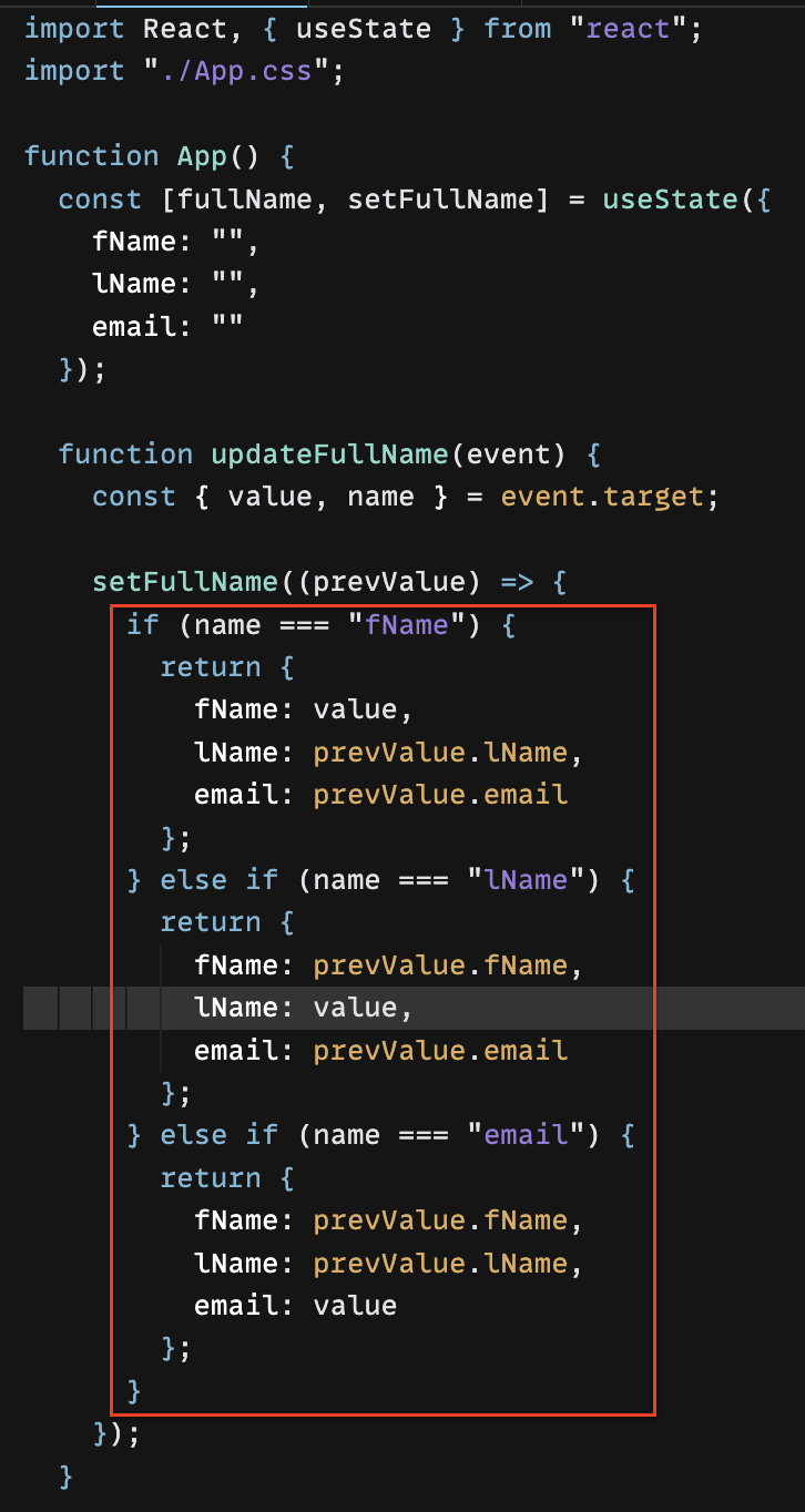 we're goint to add in a new value for whichever name of input that got passed in and the value that the user typed in.