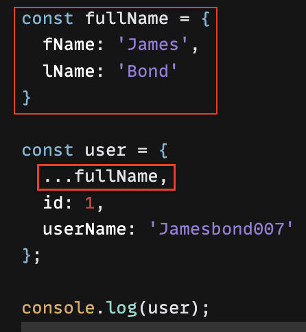 원하는 곳에 spread operator(...이름) 입력하면 스프레드되어 들어간다.