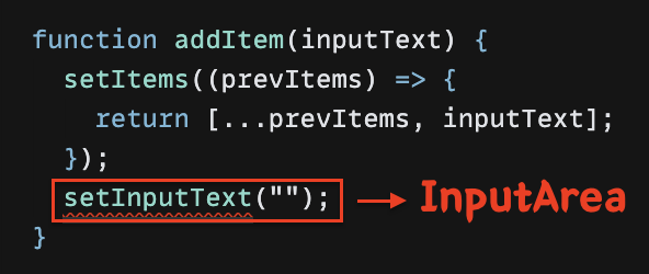 InputArea에 있는 addItem에 파라미터로 현재의 inputText를 넣어주어