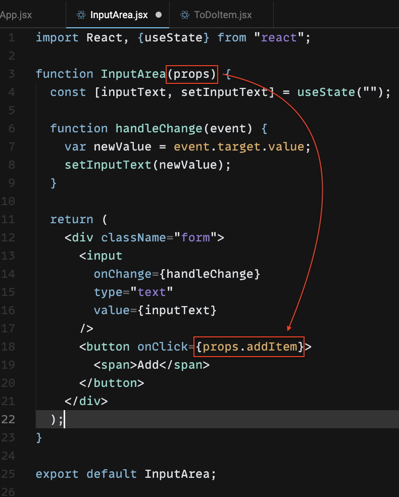 InputArea에서 props으로 받아 버튼이 클릭 됐을 때 함수를 실행 시킨다.