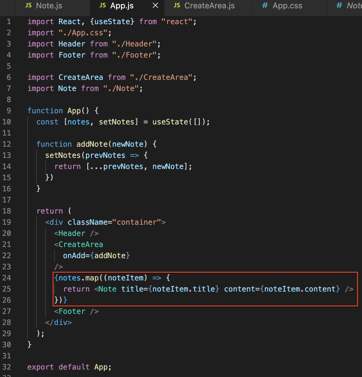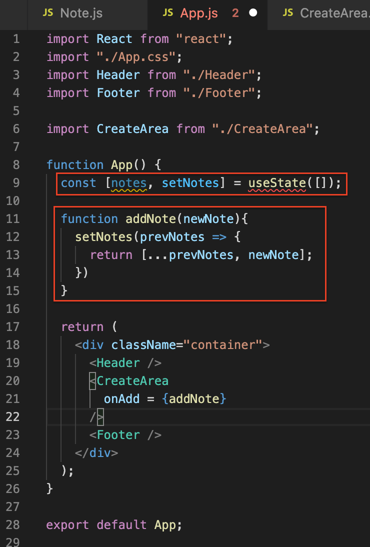 이제는 들어오는 note들을 담을 state를 만들어 보자.