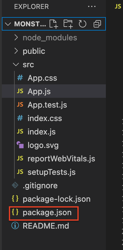 package.json 파일이 생성되어 있는 것을 볼 수 있다.