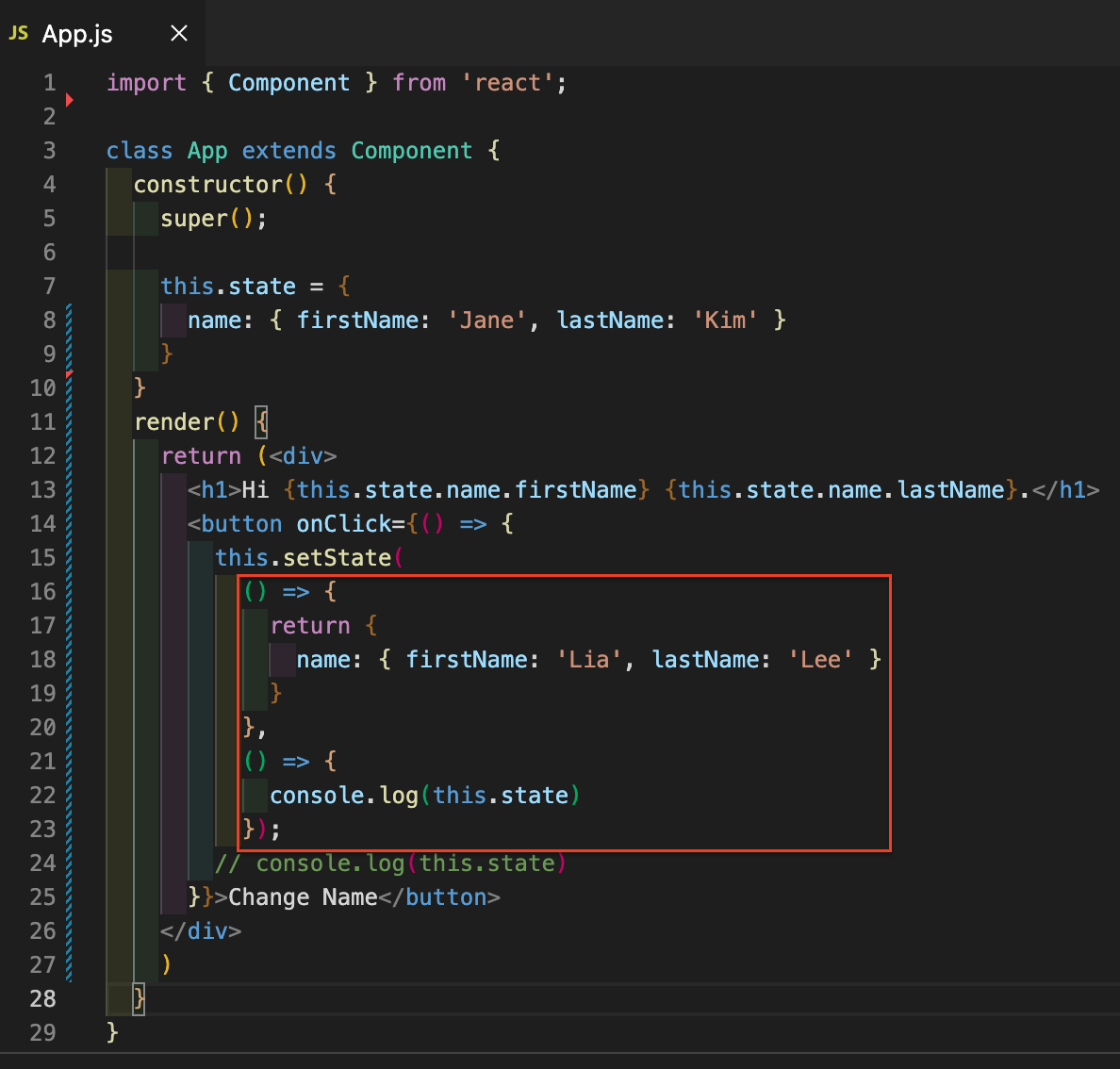 setState() 함수는 함수와 콜백 함수를 pass 시킬 수 있다.