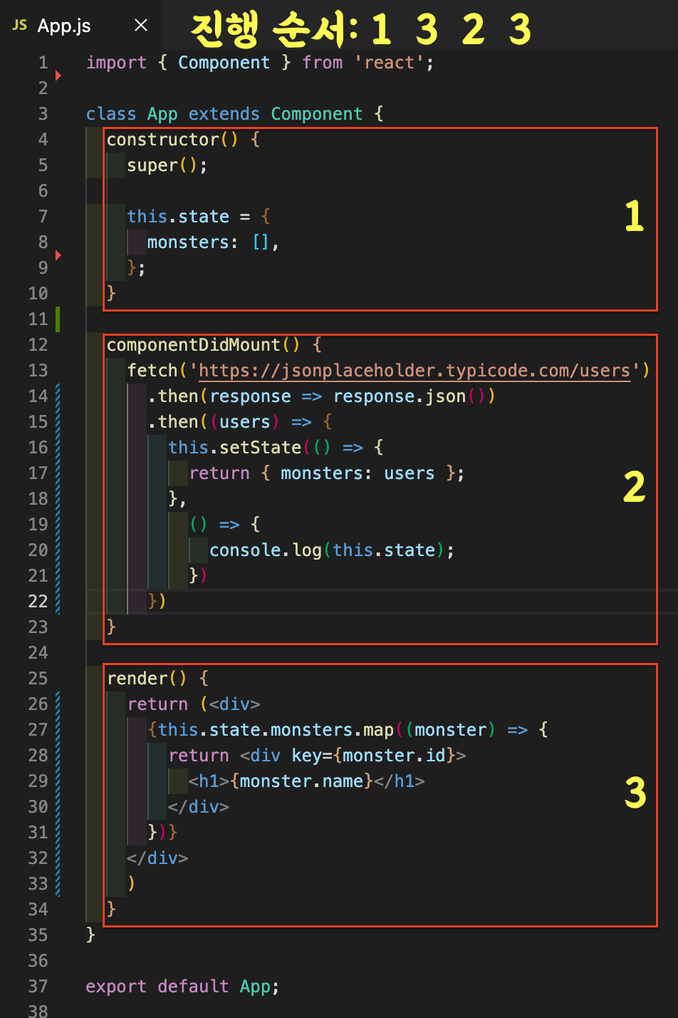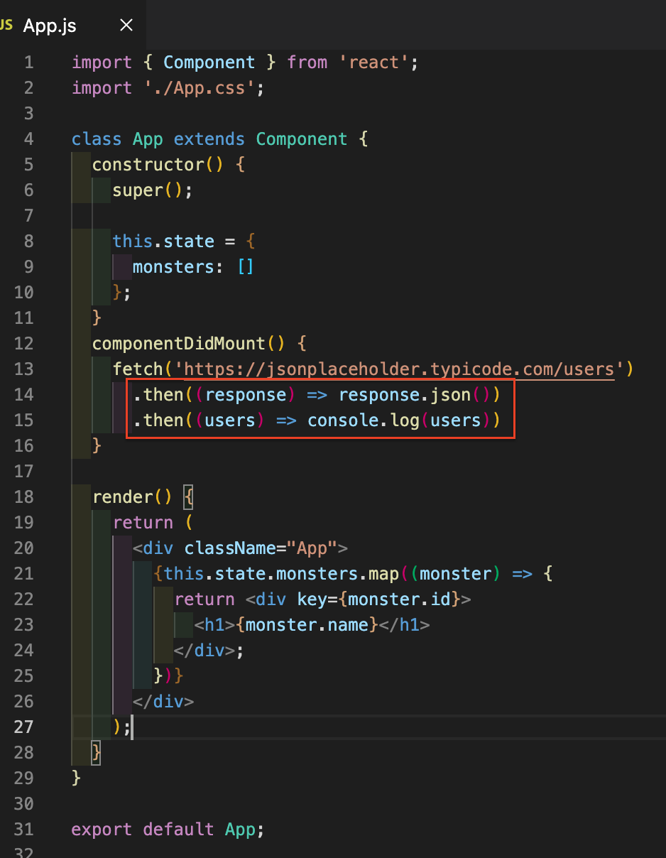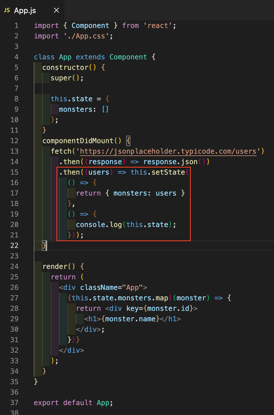 line 15: .then((users) => {monsters: users}) 로 바로 써주면 아무런 변화가 없다.
