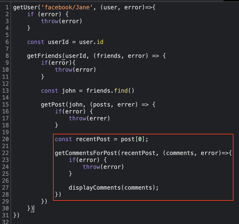 John의 posts를 찾아 본다. 이 때도 콜백으로 예외처리한다.