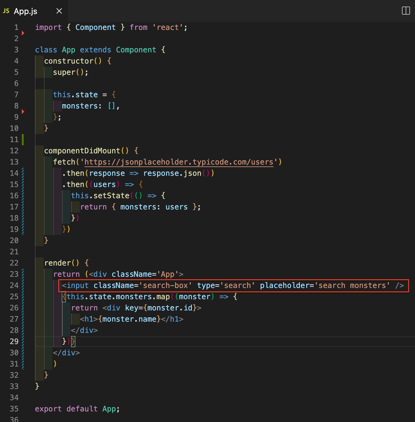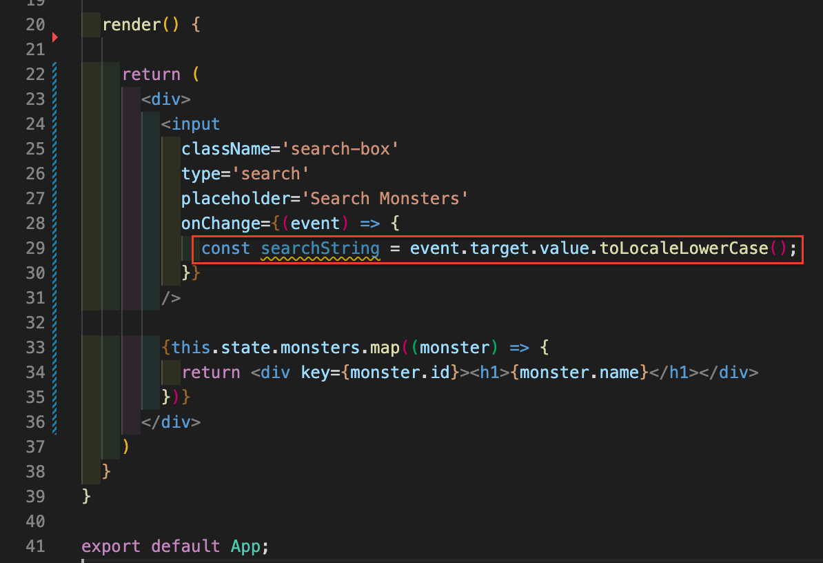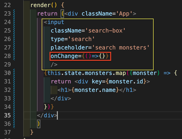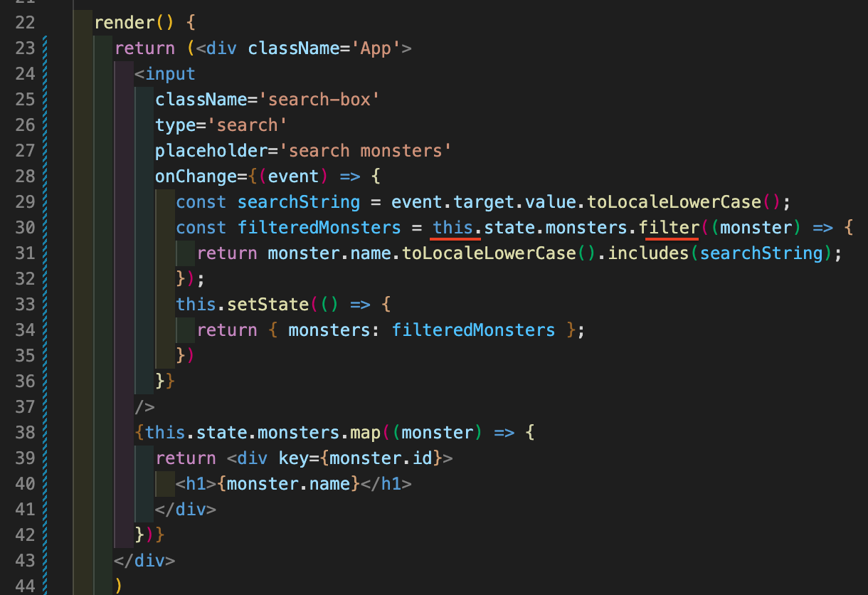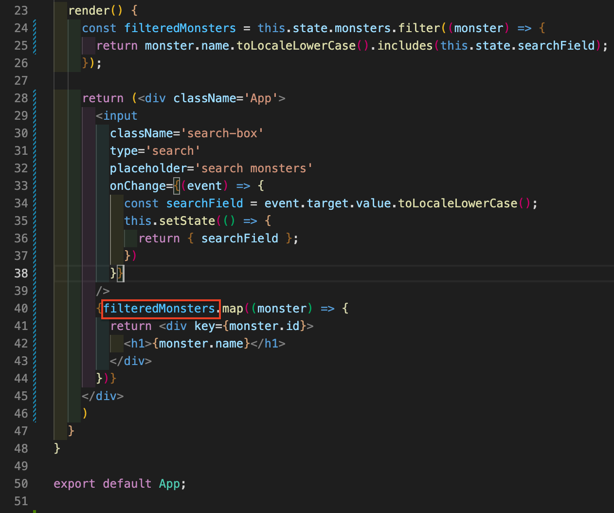 filteredMonsters array가 render() 안, return 밖에 위치하게 한다.