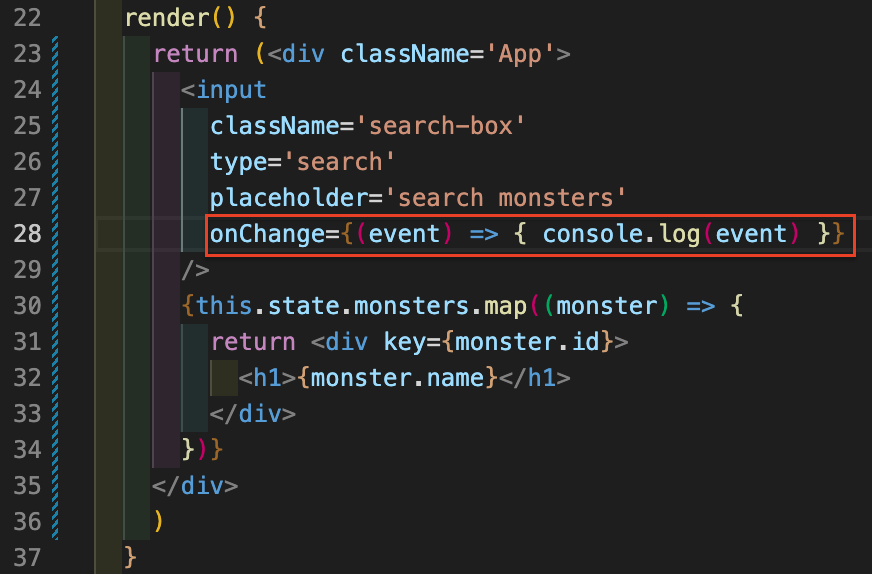filteredMonsters array가 onChange 함수 안에 있는 경우