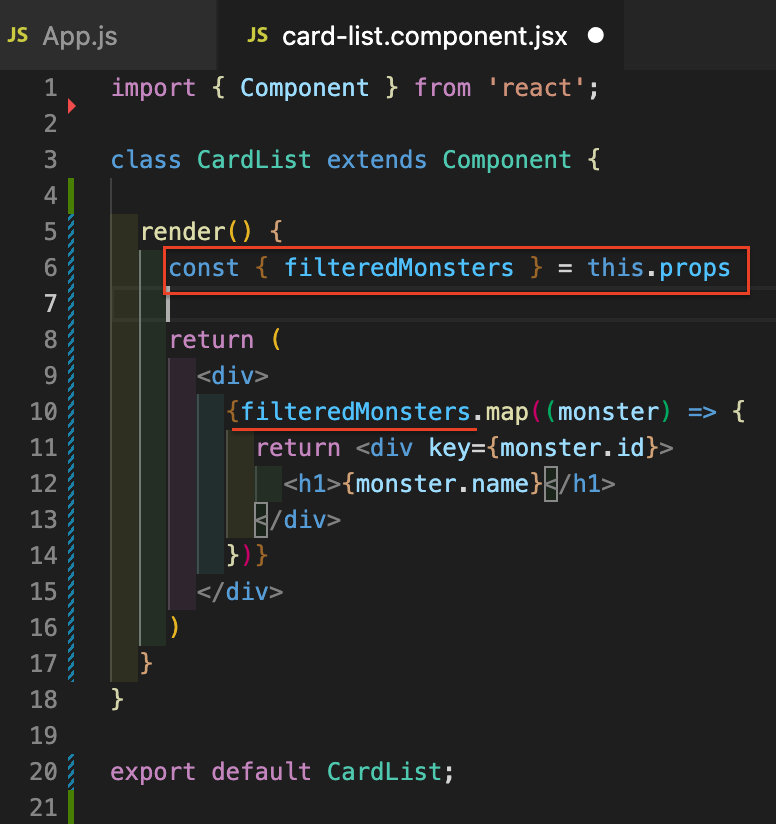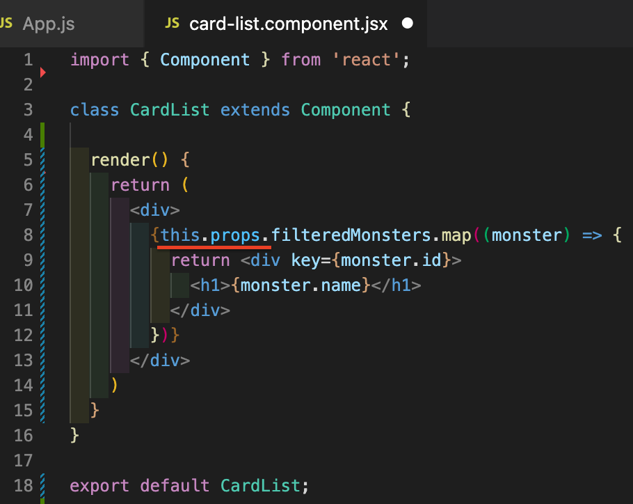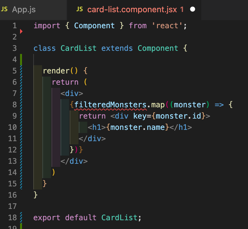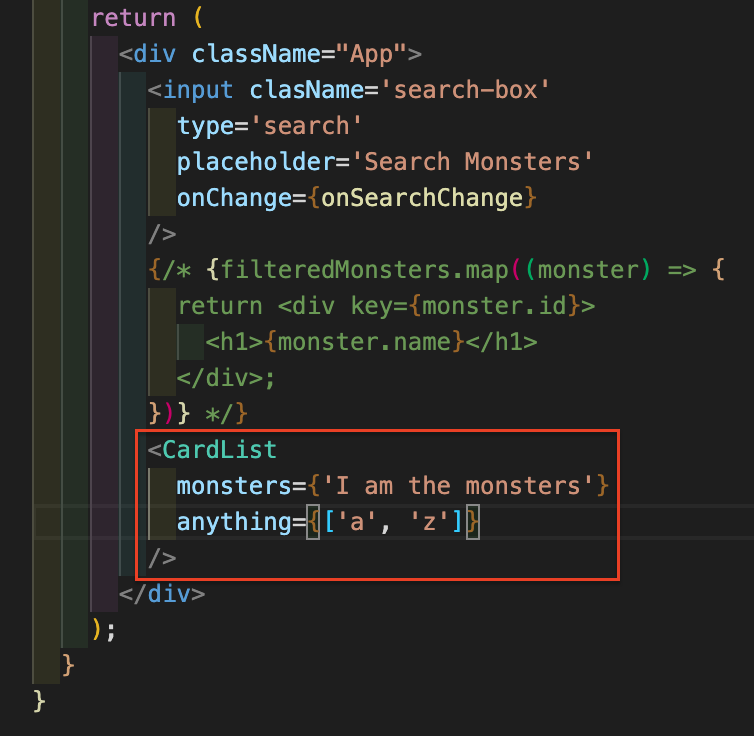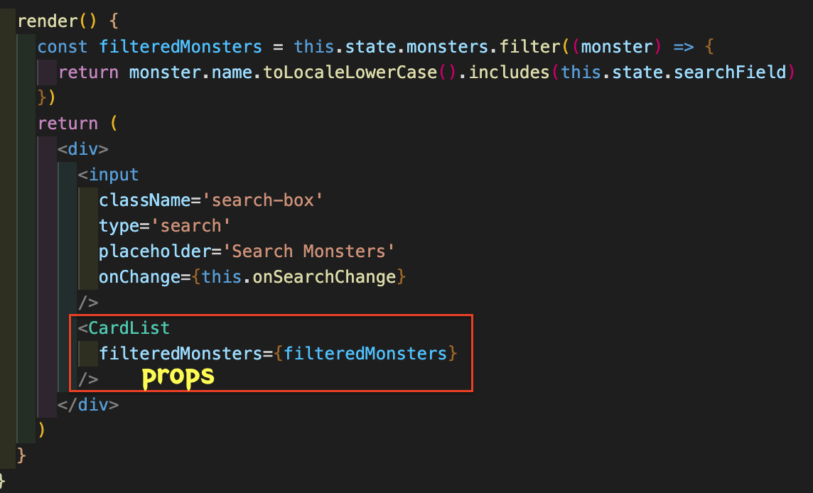 filteredMonsters가 에러가 나는데 props 설정을 해준다.
