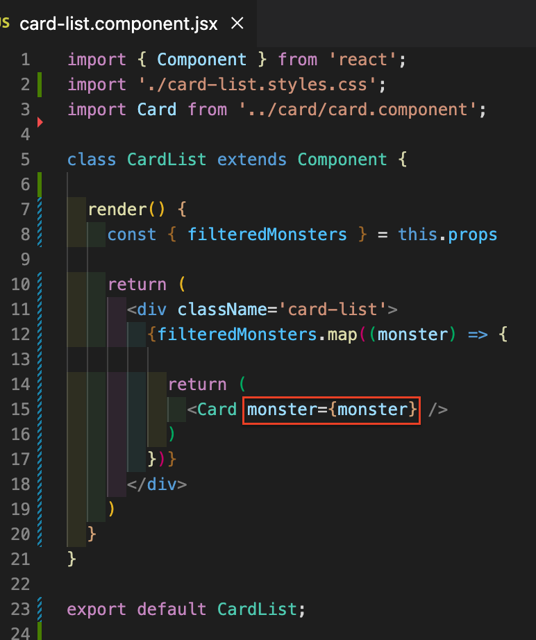 card-list 의 map() 함수 안에 든 monster를 Card로 보내줘야 한다.