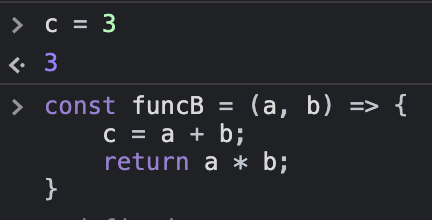 함수 안에서 c 의 값을 변경하게 되는 것을 side effect라고 한다.