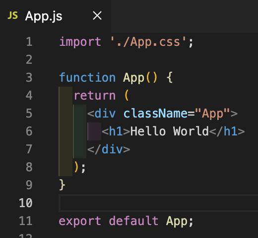 App.js 에서 필요없는 보일러 플레이트만 남기고 다른 내용은 삭제한다.