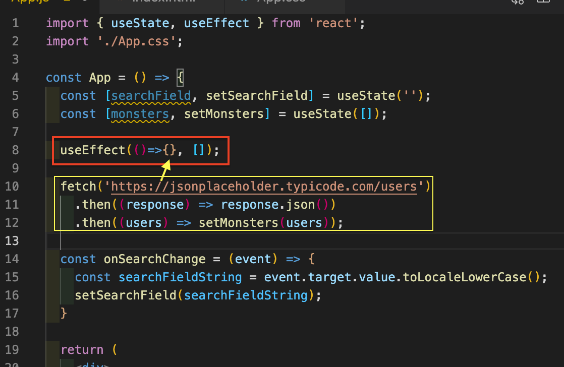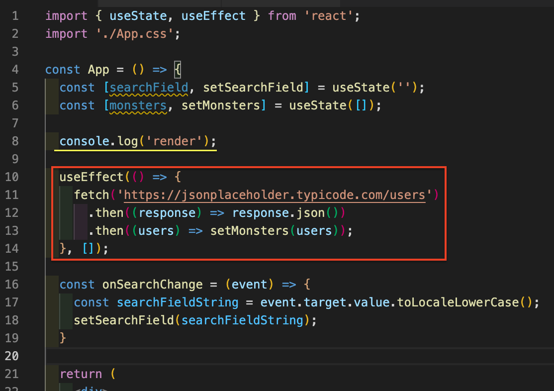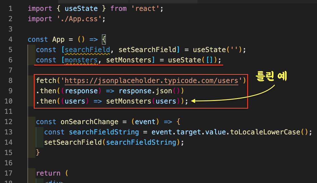 filteredMonsters를 useEffect 안으로 넣어준다.
