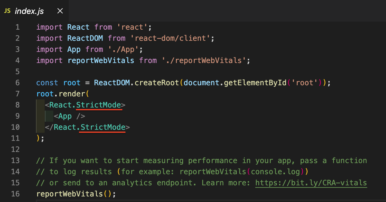 Index.js를 보면 strict mode가 생긴 것을 볼 수 있다.