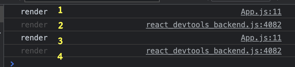 콘솔을 확인하면 render가 4 번 된 것을 알 수 있다.