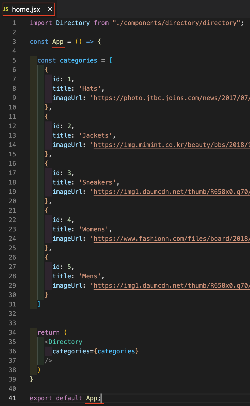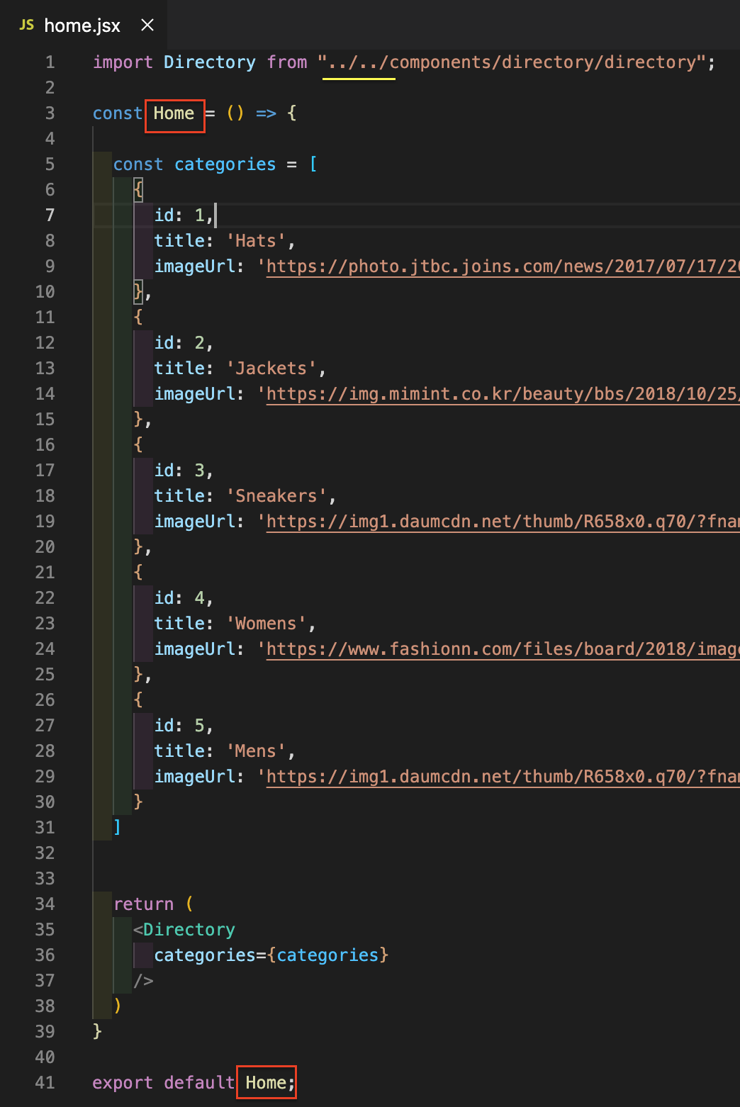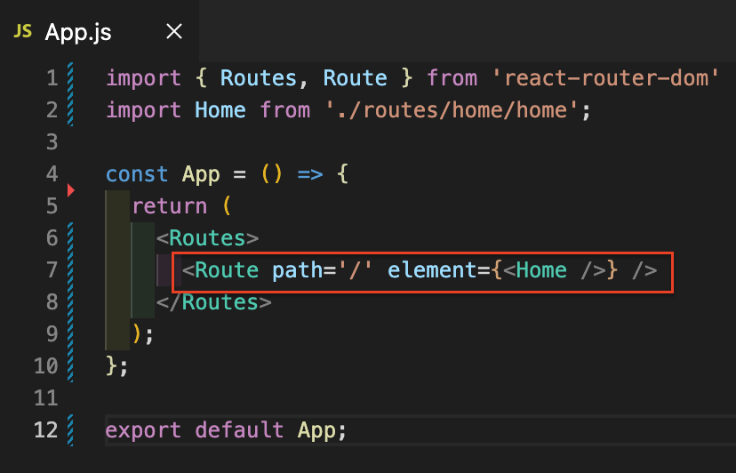 home 파일에 App.js 내용을 모두 복사해서 붙여넣기 한다.