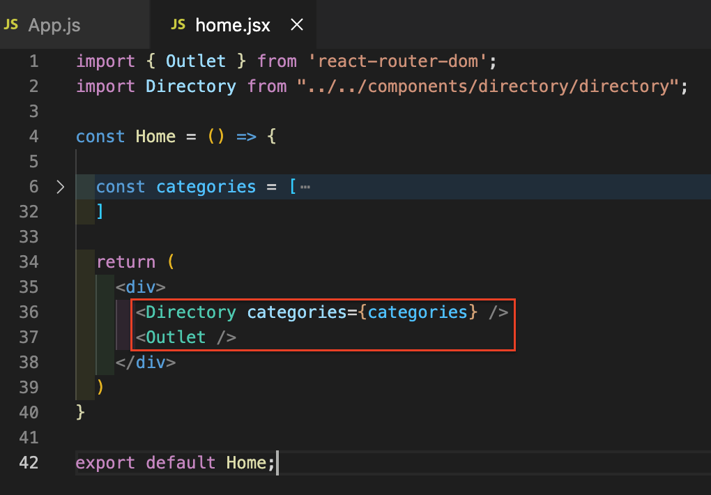 <Outlet />을 <Directory /> 아래로 놓으면 내용이 아래에 나온다.