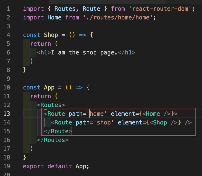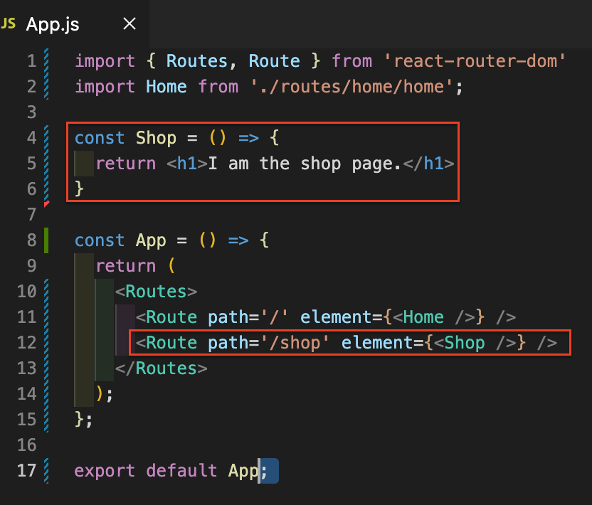 App.js에서 Route를 Shop으로도 연결되도록 해보자.