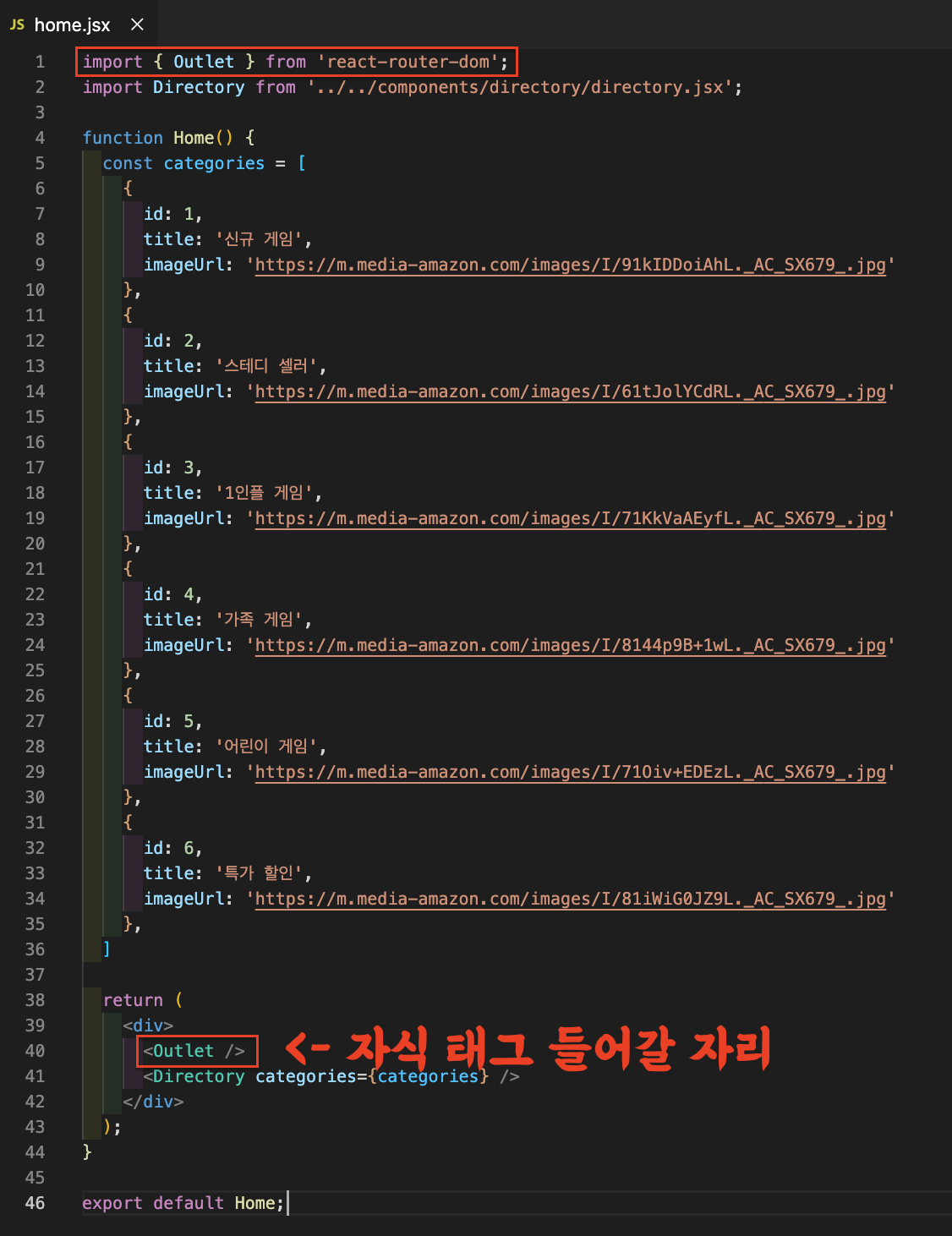 자식 태그 놓을 자리에 Outlet 태그를 적어준다.
