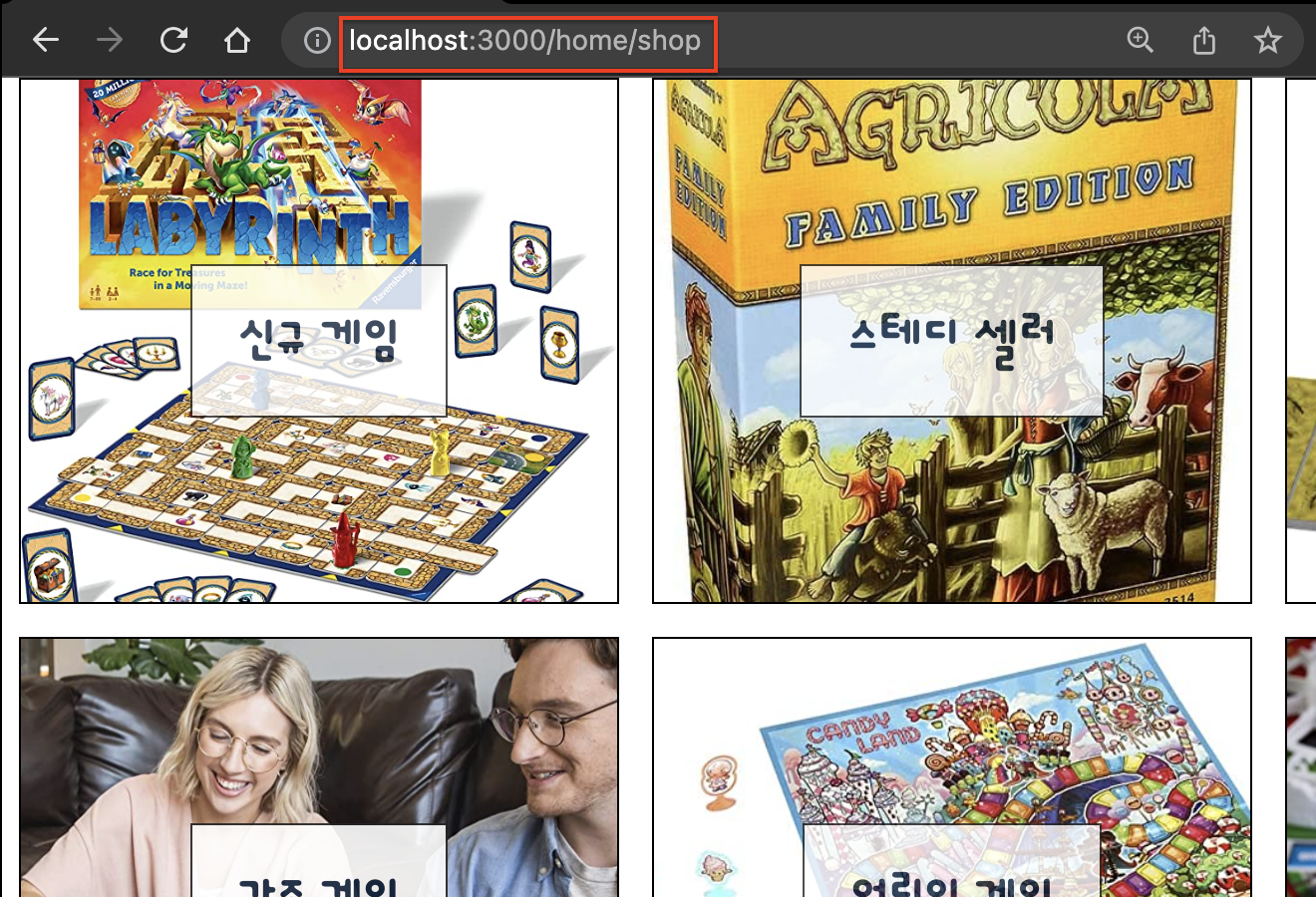url 주소는 localhost:3000/home/shop 이렇게 되어야 해당 페이지로 갈 수 있다.