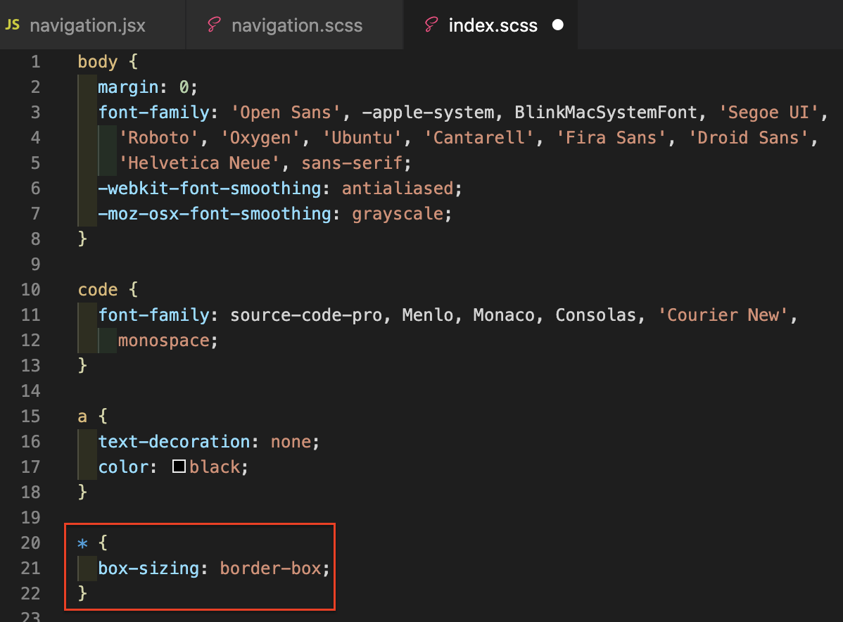 index.scss에 전체적에 적용시킬 내용을 적어준다.