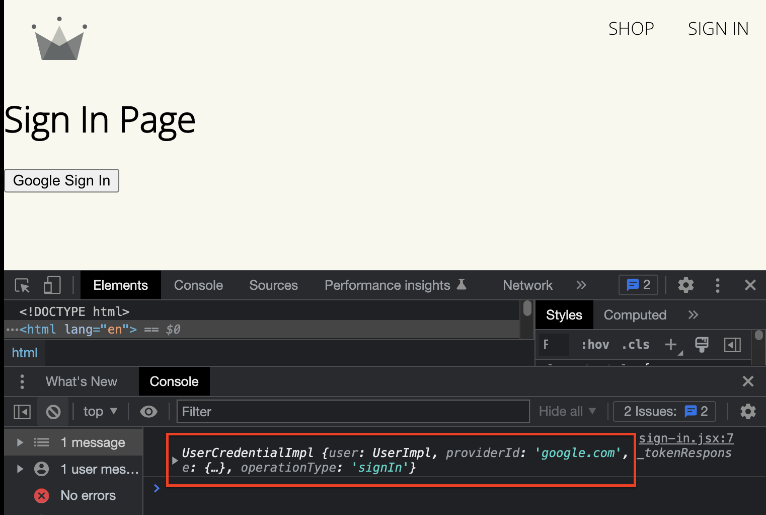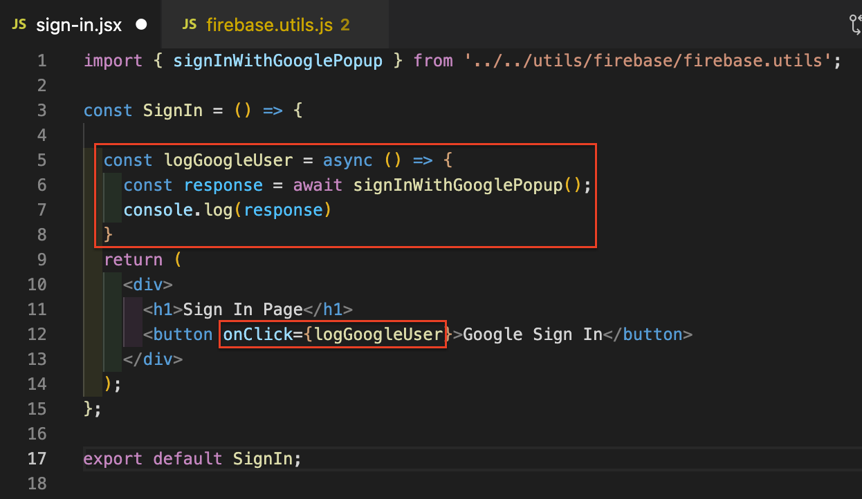 firebase.utils.js에서 export한 내용을 sign-in으로 가져온다.