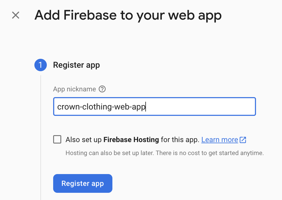원하는 이름을 입력하고 Register app 버튼을 누른다.