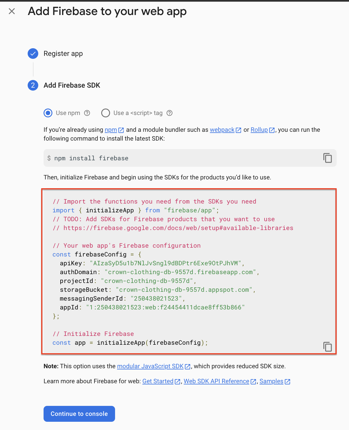 firebase에서 config를 받아와 내 웹 코드에 붙이면 된다.