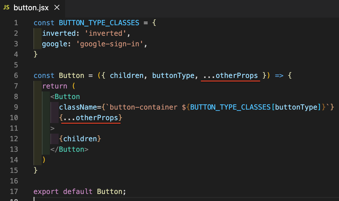 button.jsx 에서는 속성을 일일이 안써주고 ...otherProps 로 퉁친다.