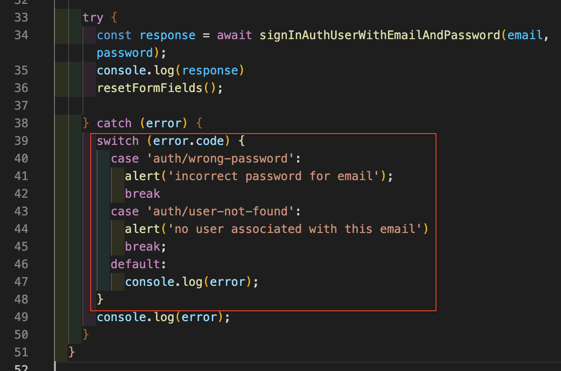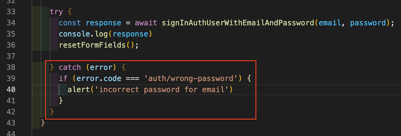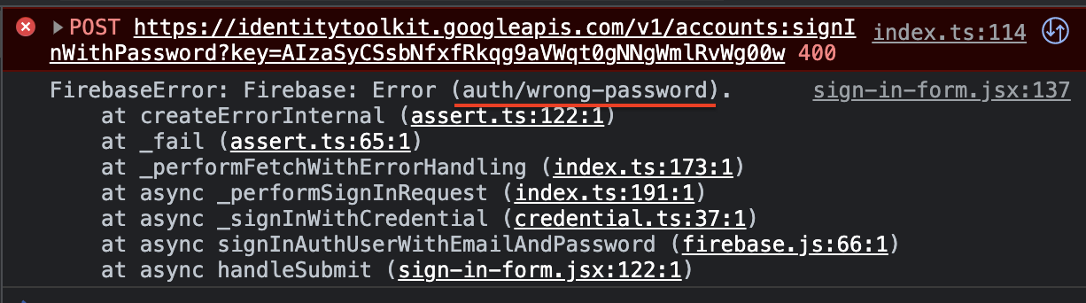 그러면 error.code가 auth/wrong-password가 같은 아닌지에 따라 에러인지를 체크할 수 있다.