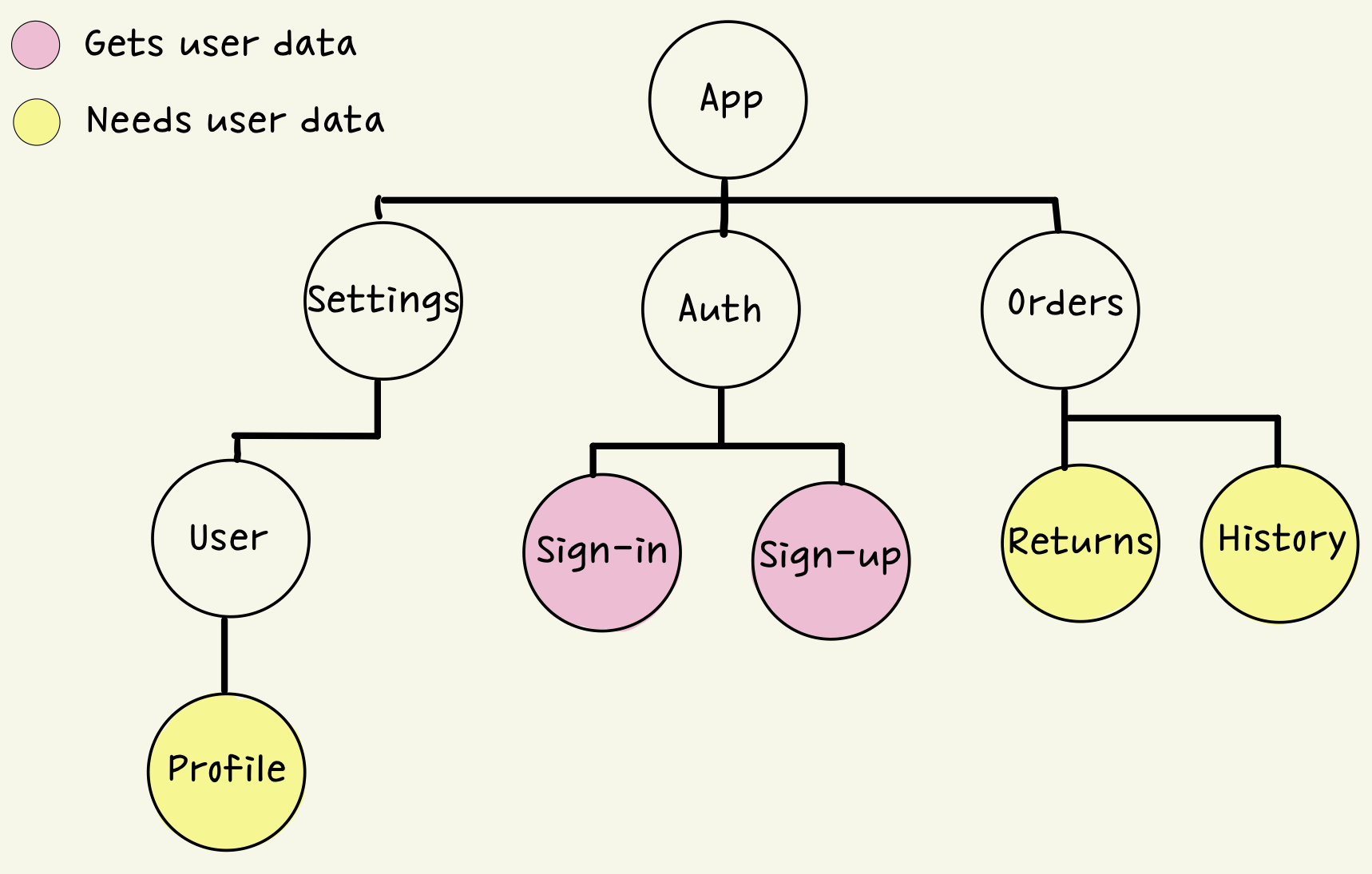 컴포넌트 트리에서 user data를 받는 페이지는 sign-in과 sign-up 페이지이다.