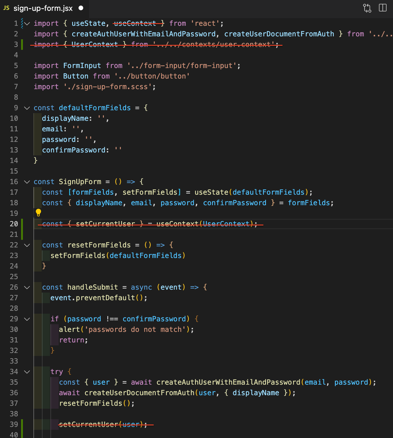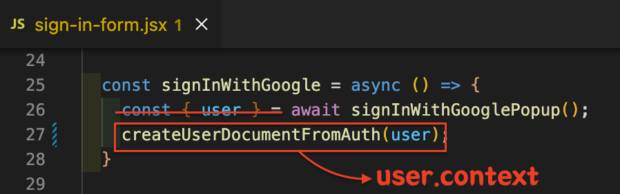 signInWithGoogle 메소드에서 createUserDocumentFromAuth(user)를 떼서