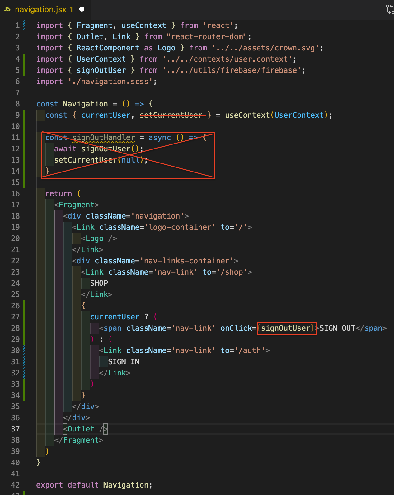 onClick 했을 때 signOutUser만 호출해주면 된다.