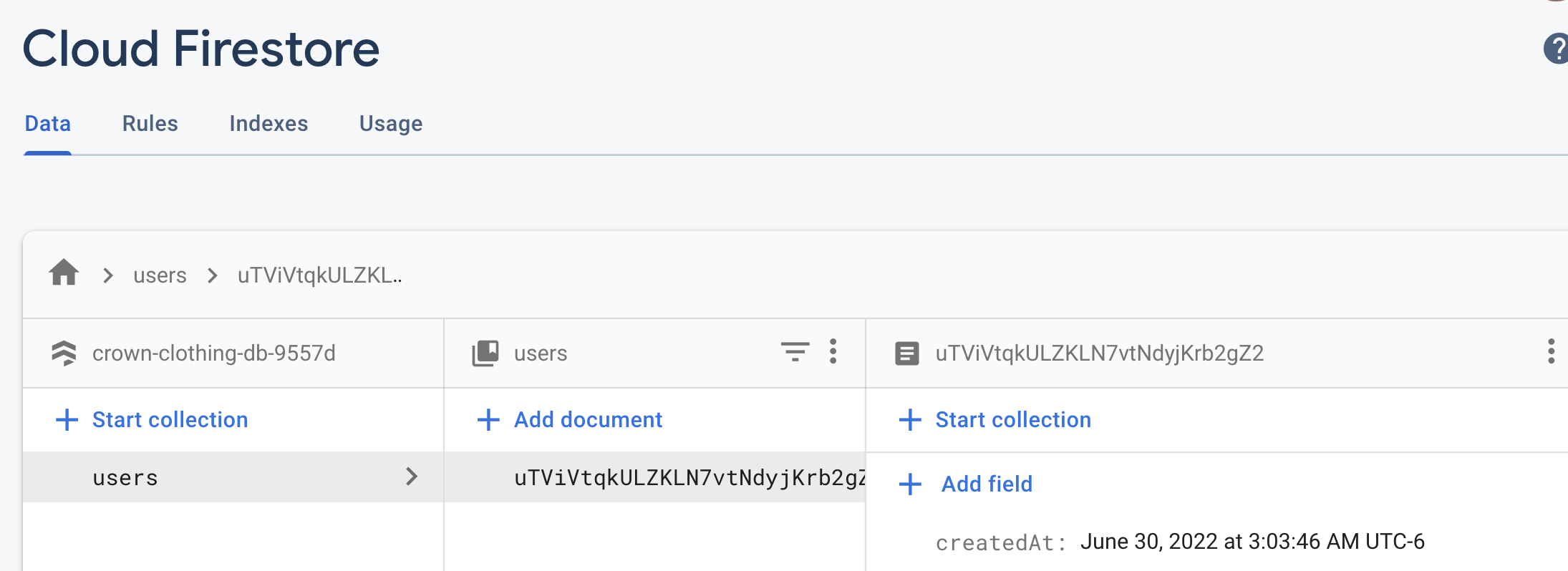 리스너 안에서 user가 들어올 때만 이 user document를 만든다.