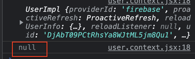 listner에서 sign-in 되면 setCurrentUser에 user instance가 들어가고 sign out 되면 null이 들어간다.