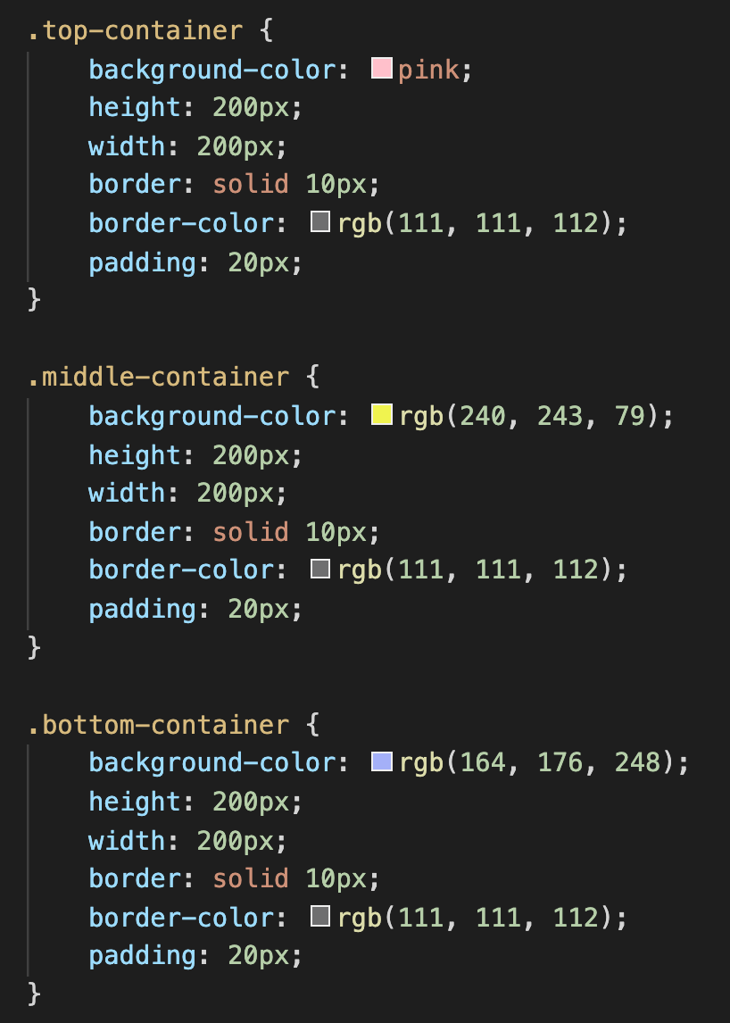 그리고 각각 div 마다 다른 이름의 클래스를 만든다.