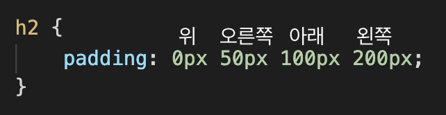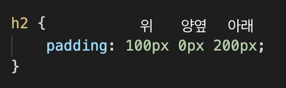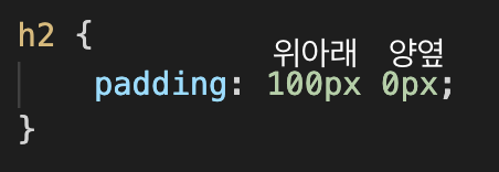 위아래 먼저 입력, 띄여쓰기하고 양 옆의 값을 입력한다.