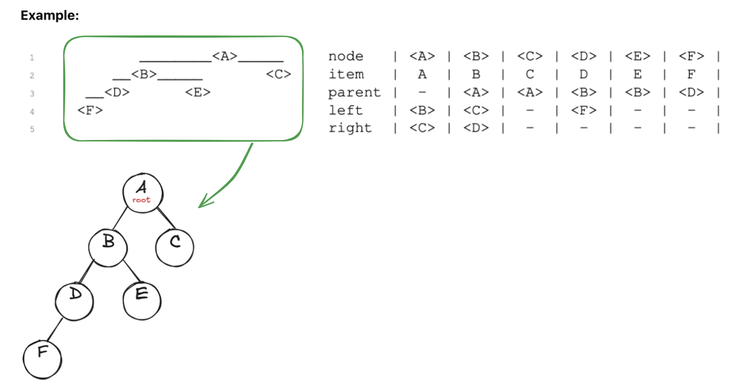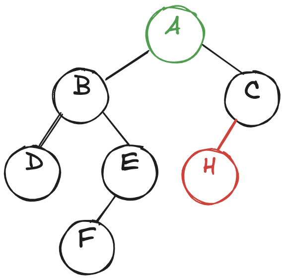 트리의 루트는 부모 노드가 없다. (예: <A>)