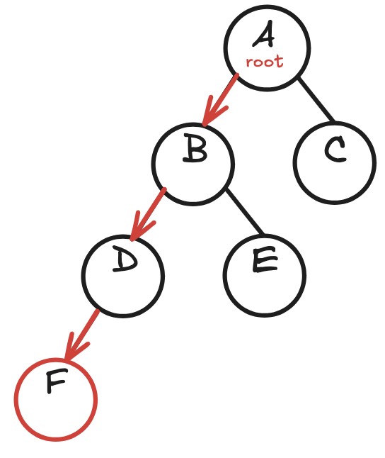 Example: Traversal order is (<F>, <D>, <B>, <E>, <A>, <C>)