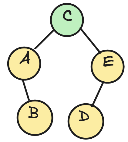 | 1 | C | 2 | 1 | 왼쪽 서브트리로 이동 |