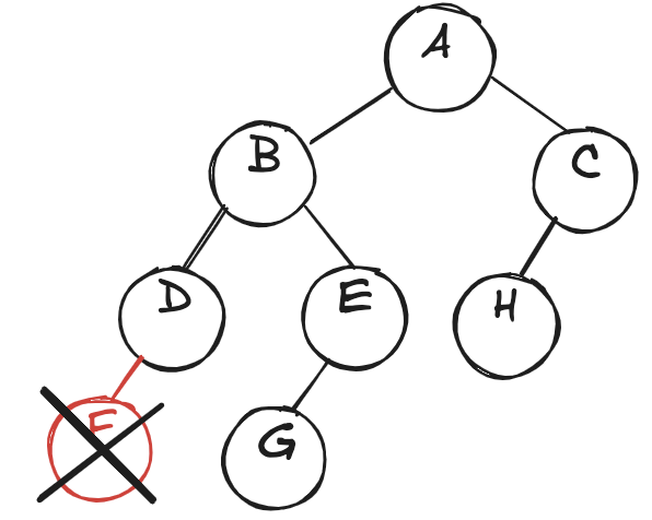 트리의 리프(leaf, 잎 노드)는 자식 노드가 없다. (예: <C>, <E>, <F>)