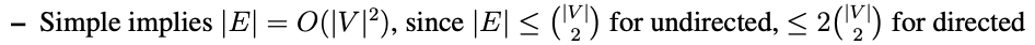 단순 그래프에서는 간선의 수가 O(|V|²) 이하이다.